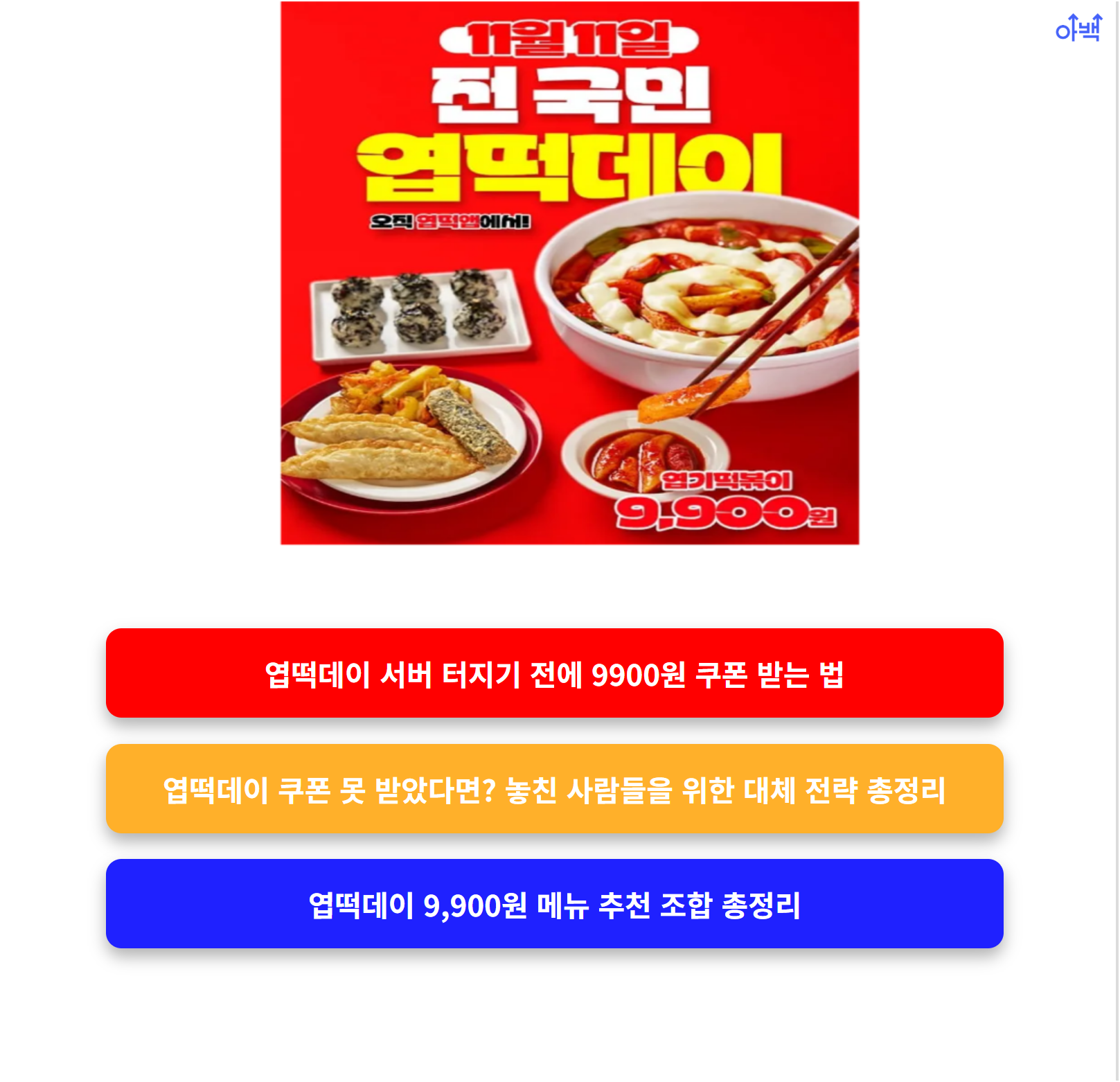 엽떡데이 9,900원 할인 이벤트, 쿠폰만 받는다고 끝이 아닙니다. 진짜 중요한 건 **어떤 메뉴를 어떻게 조합하느냐**죠! 초보자부터 매운맛 덕후까지, 엽떡 마니아가 직접 추천하는 엽기떡볶이 메뉴별 베스트 조합을 알려드립니다. 11월 11일부터 시작되는 이 할인찬스에서 가장 알차게, 가장 맛있게 즐기고 싶은 분들은 끝까지 꼭 확인하세요!