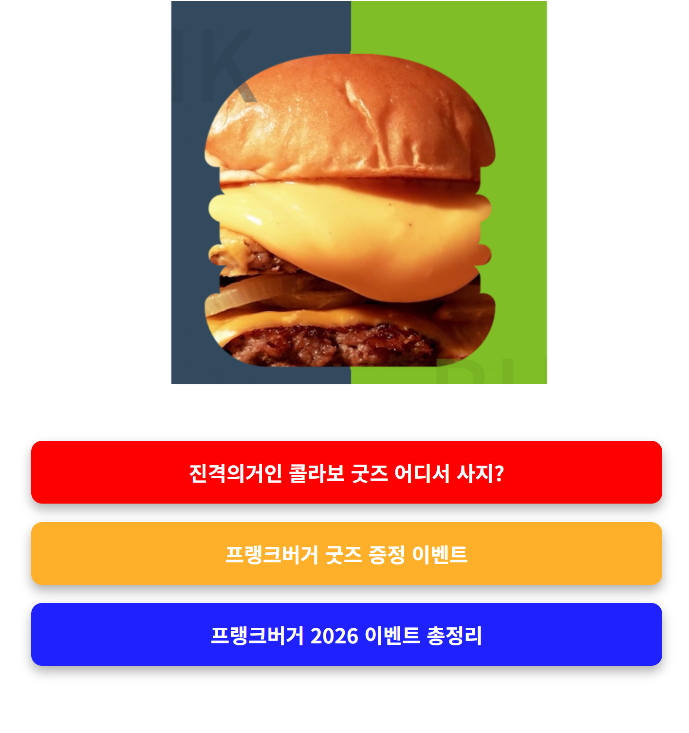 진격의거인 콜라보 굿즈는 **전국 프랭크버거 매장(일부 한정)**에서, 특정 조건을 충족할 경우에만 지급됩니다.