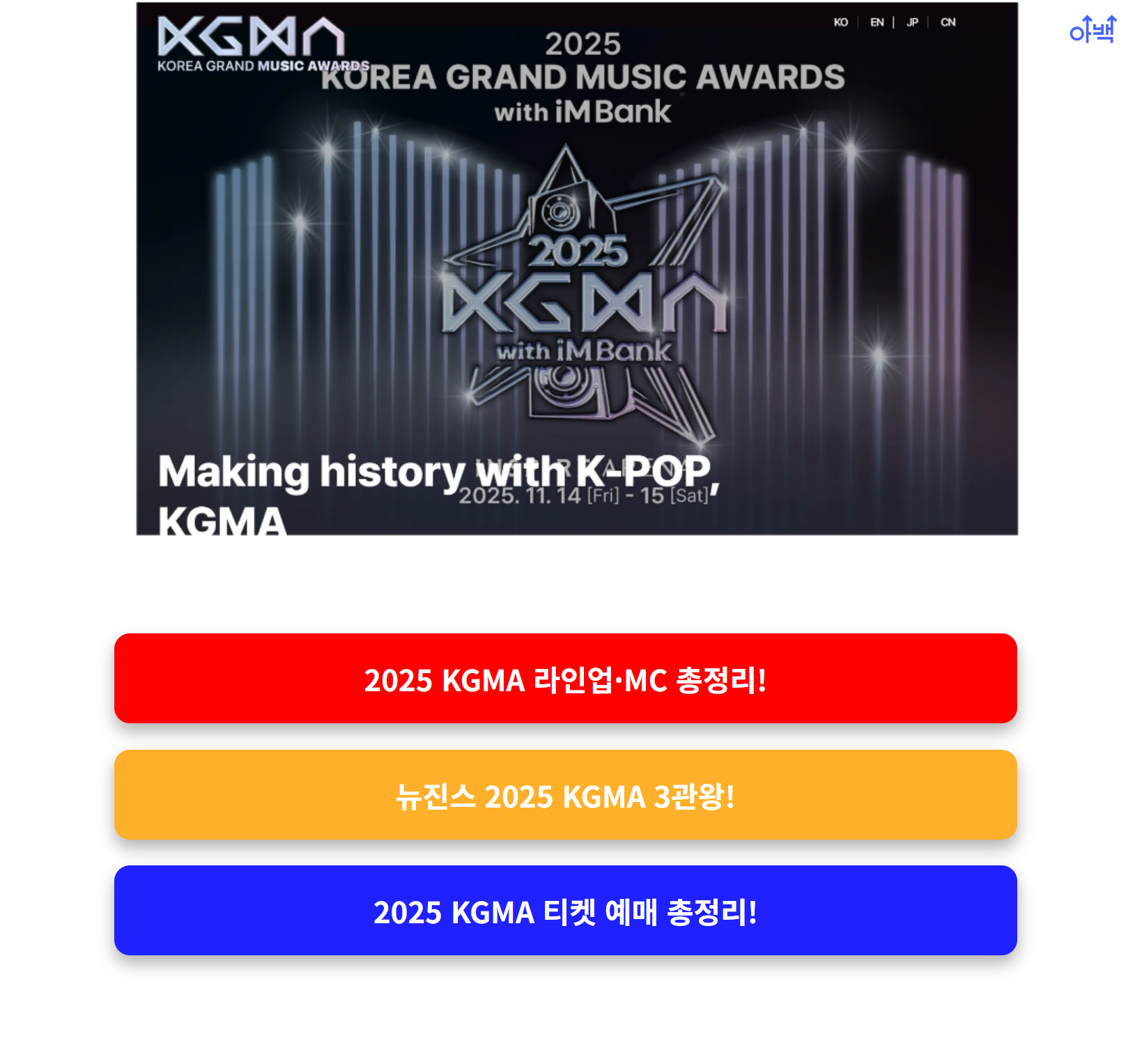 🎁 지금 KGMA 공식 홈페이지에서 전체 라인업, 무대 구성, 티켓 안내를 확인하고 예약을 서두르세요!