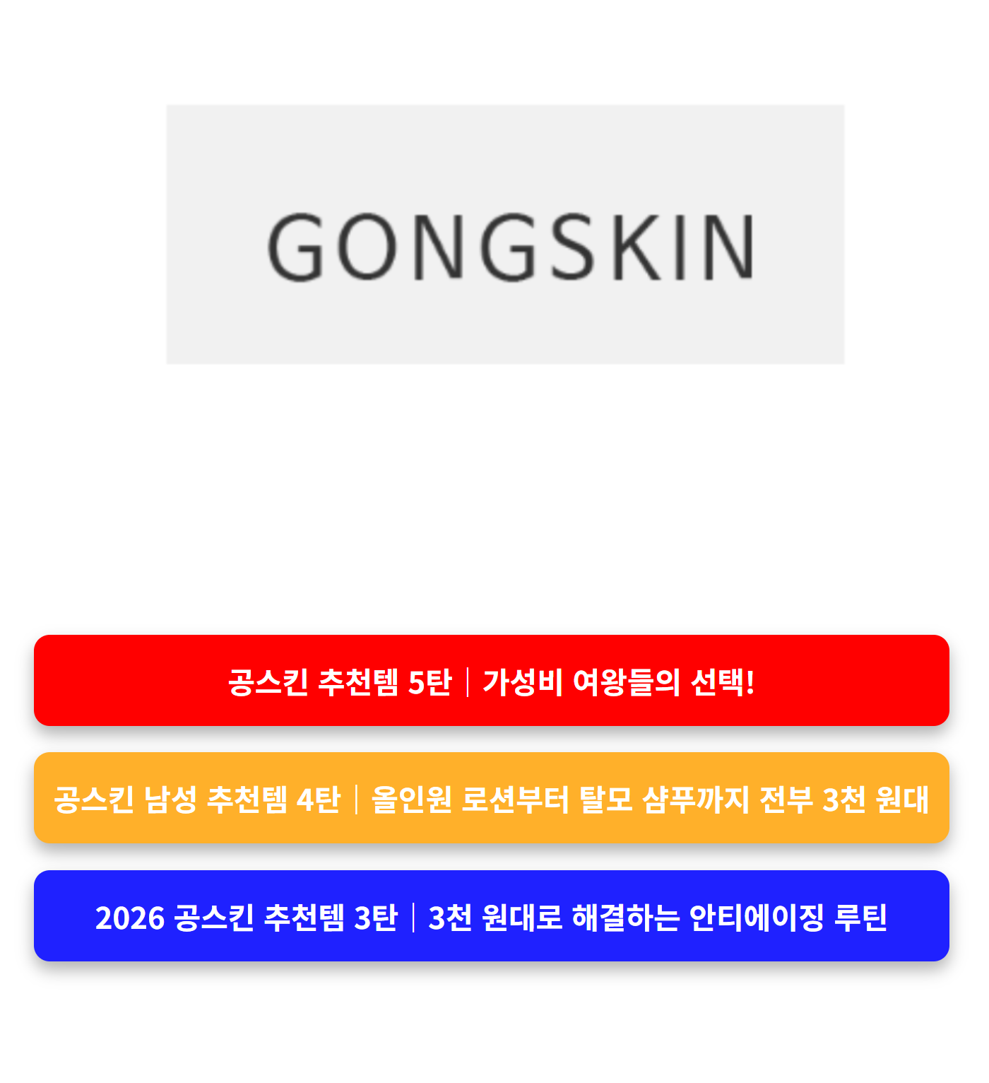 공스킨은 단순히 싼 화장품이 아닙니다. 기능성 인증 + 합리적인 가격 + 믿을 수 있는 구성으로 진정한 ‘가성비 끝판왕’ 브랜드입니다. 오늘이 지나면 품절될 수도 있습니다. 지금 바로 공식몰에서 최저가 확인하세요!