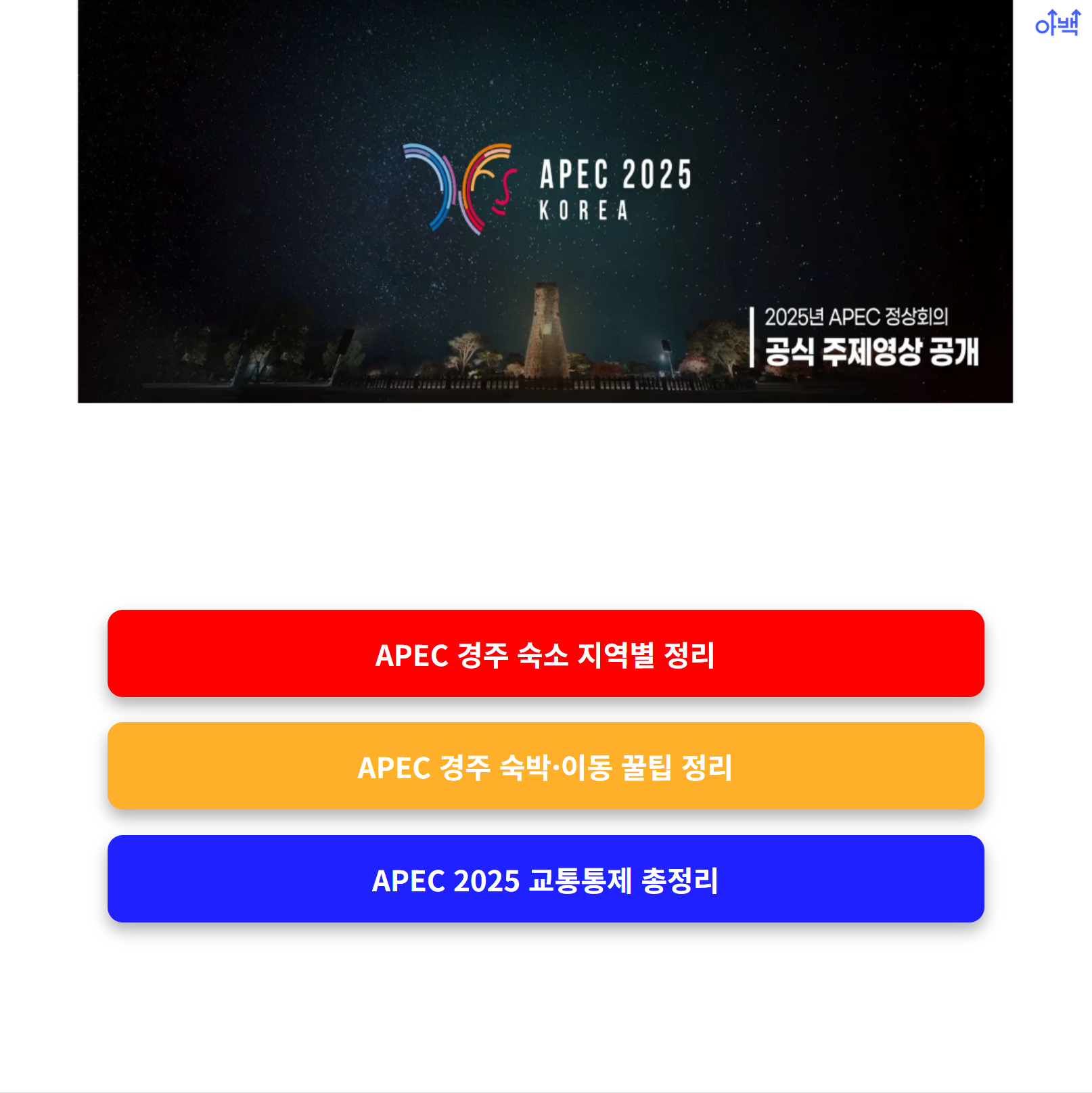 2025년 10월 말, 경주는 아시아태평양 21개국 정상과 대표단이 한자리에 모이는 APEC 경제지도자 회의의 개최지로 전 세계의 이목을 끌게 됩니다. 이 기간 동안 경주는 매우 혼잡해지며, 숙박 예약은 물론 교통 혼잡도 상당할 것으로 예상됩니다. 관광객과 시민 모두를 위한 실질적인 숙박·이동 요령이 필요합니다. 지금 확인하지 않으면 숙소도, 교통도 모두 놓칠 수 있습니다!